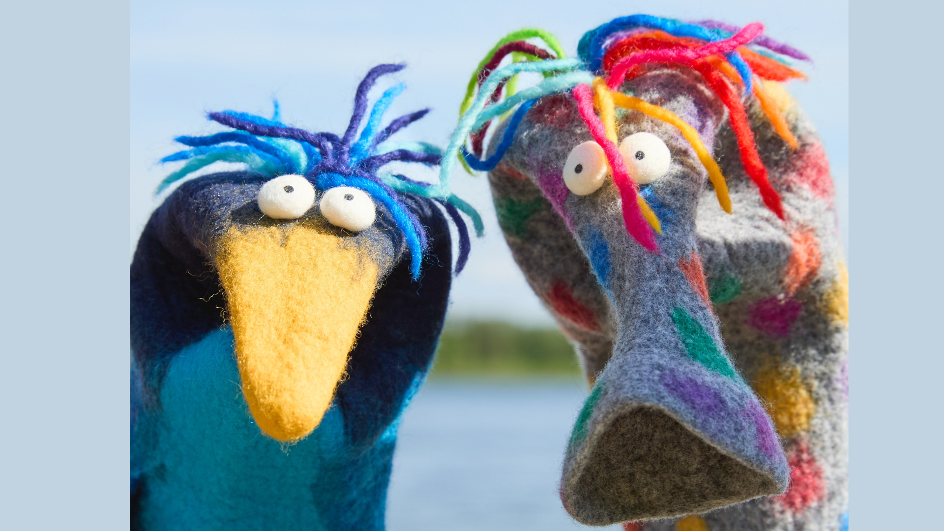 Die Hauptfiguren in Nordstrand sind zwei Puppen: Toni, die Riesenblaumeise und Jona der Wattwurm.