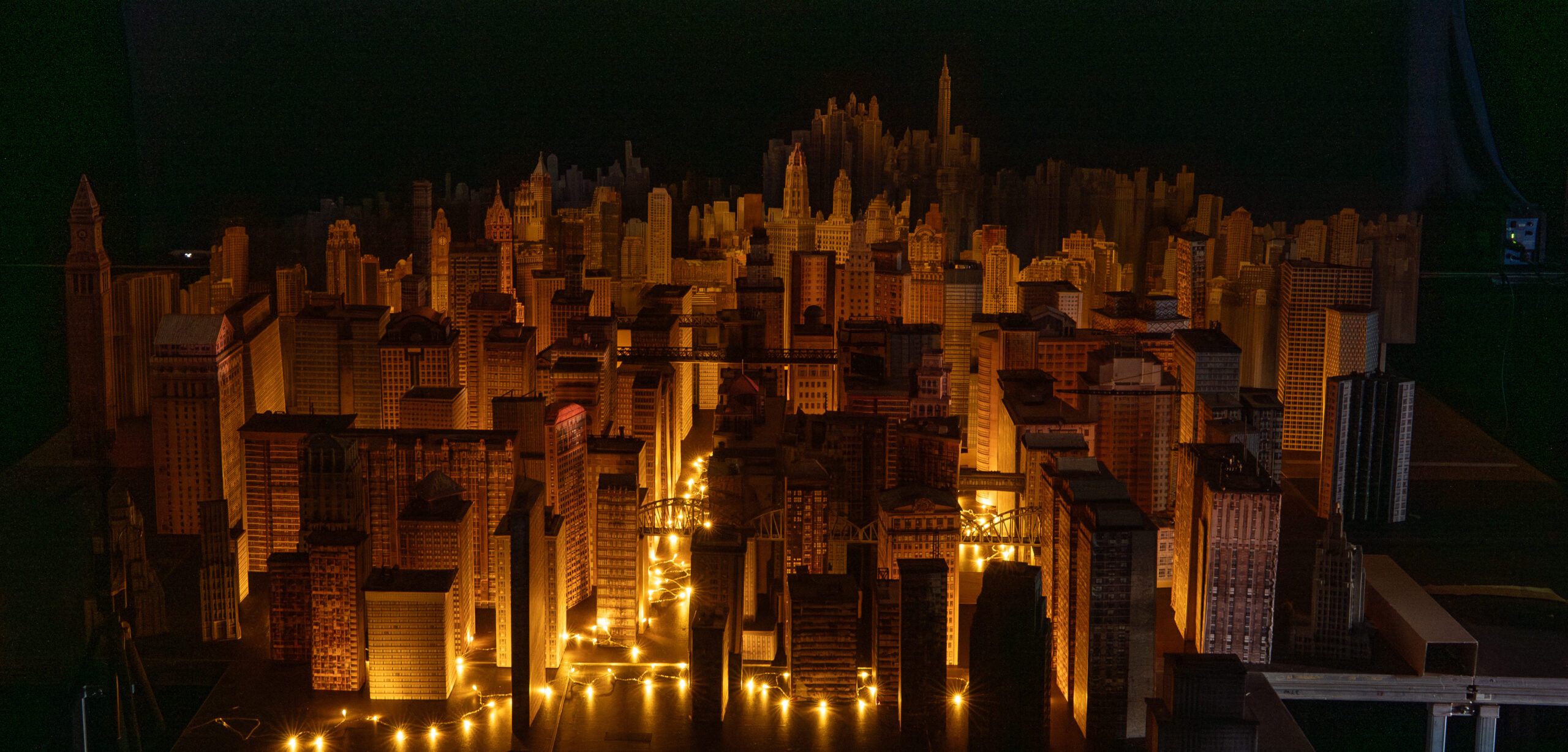 Eine monumentale Modellstadt aus Pappe, gebaut für den Kinofilm „Das Leben der Wünsche“, betritt selbst die Bühne. Hochhäuser aus Karton, Klebeband und Licht – eine Metropole im Maßstab der Vorstellungskraft.